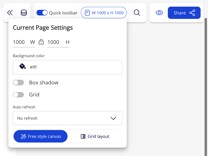 Choose **Free style canvas** or **Grid layout** if you want