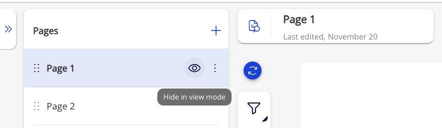 Unable ![](https://1648695648-files.gitbook.io/~/files/v0/b/gitbook-x-prod.appspot.com/o/spaces%2FygZlXb1uCVgursV03Kgn%2Fuploads%2FJNnfp0gH2OPFmWkl3Jqr%2Fimage.png?alt=media\&token=34eef23f-853c-4a9d-9b90-537b16adfefb)on the right of the page name **to hide page in view mode**&#x20;