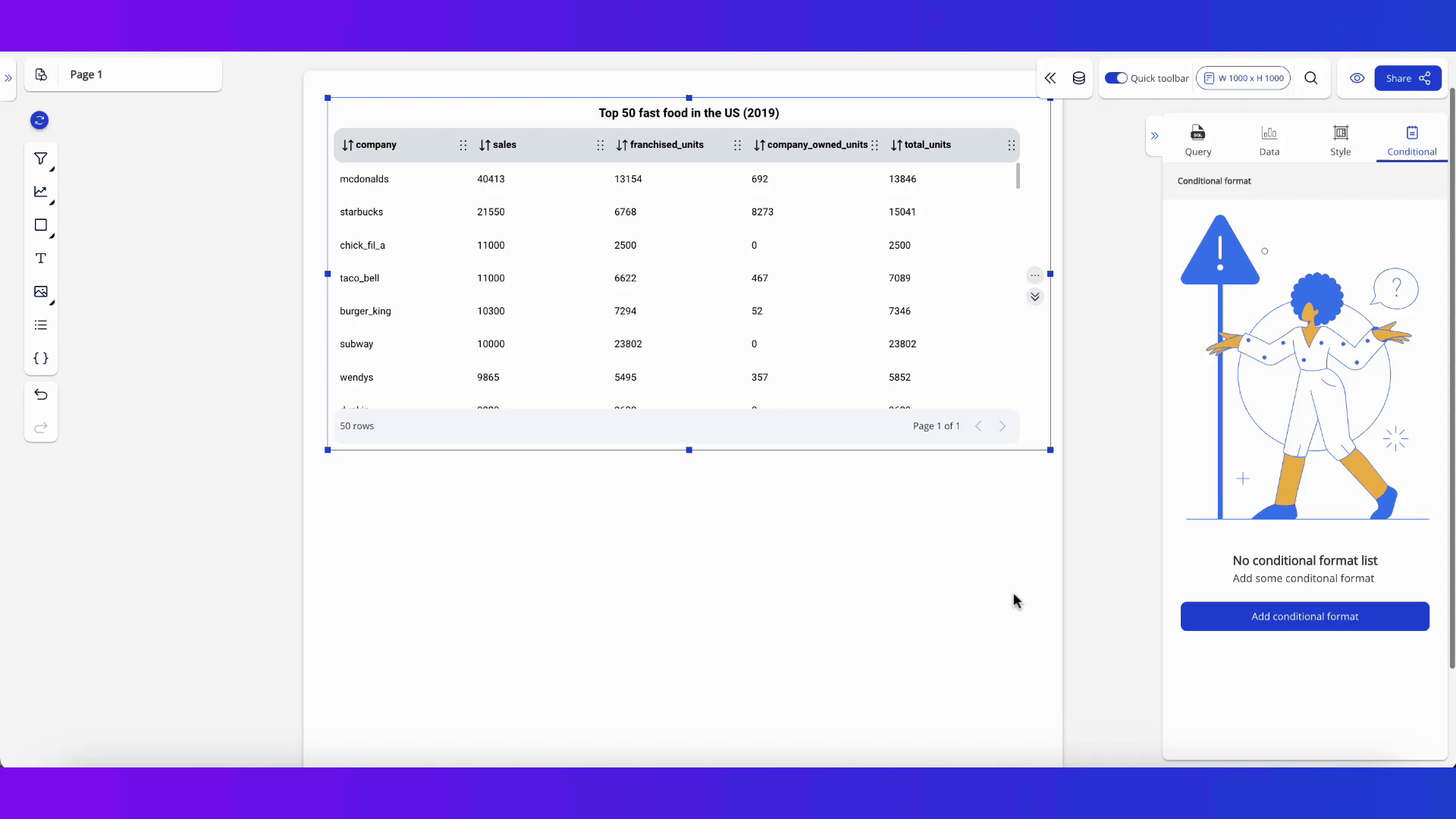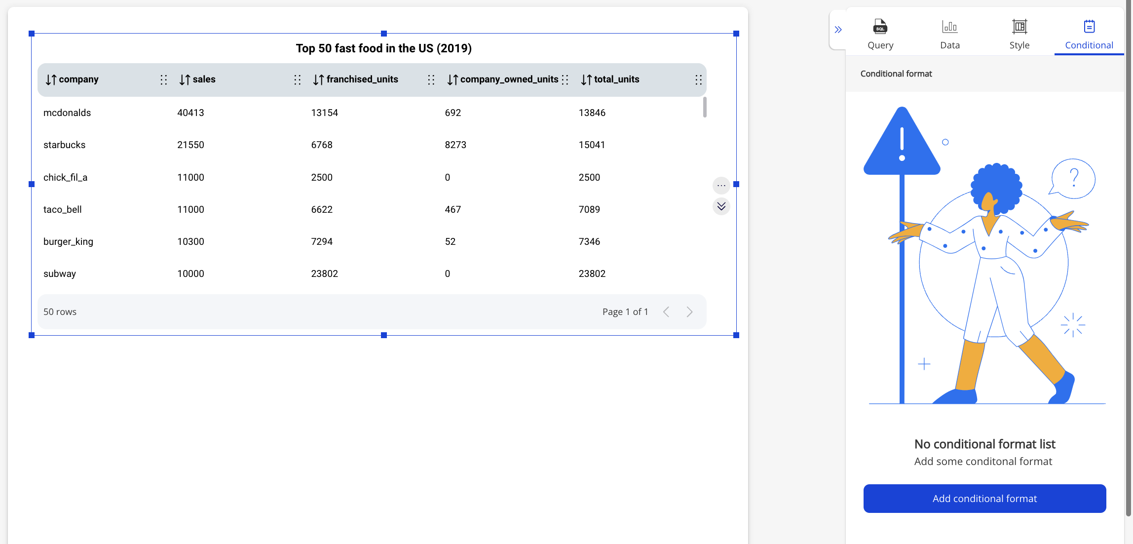 Conditional format in Dataflake helps you highlight cells with a single color or multiple colors based on cells' values.